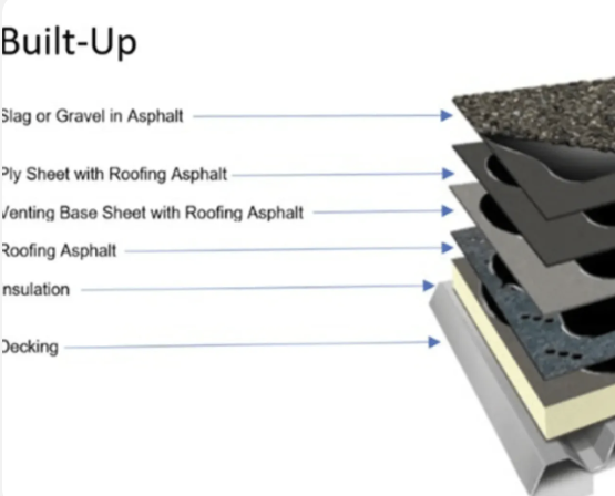 Built-up roofing, also known as “tar and gravel” roofing, consists of multiple layers of bitumen and reinforcing fabrics for superior protection. This time-tested system provides excellent insulation, UV resistance, and long-term value for large commercial roofs.